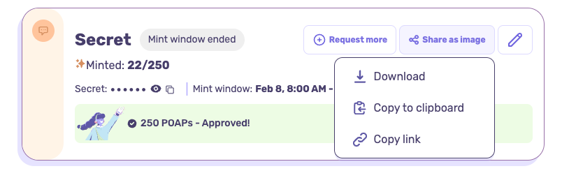 - From Drops console, click 'share as image' to download