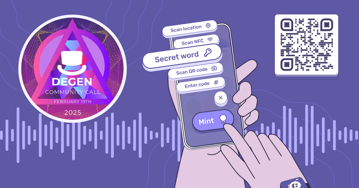 The Degen team launched on Farcaster about a year ago, and has been hosting monthly Spaces on X for about as long, as a place for degens to get together and learn about what’s happening with the project. Since POAP launched on Base, Degen has started minting POAPs as a way for their community to have something to show for keeping up with the project.